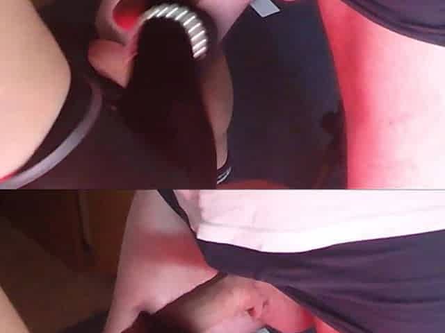 Smoking Wife in Red Rubber Gloves Jerking Cumshot