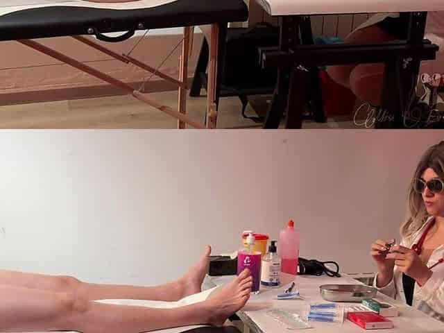 Doctor Tampa inserts catheter into Aria Nicole's urethra at Doctor-TampaCom