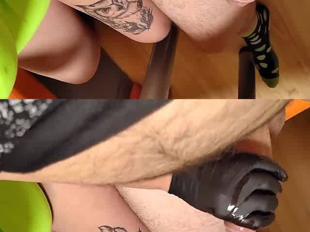 Sensual encounter: I pleasured my pussy, then expertly stroked his hard cock in gloves