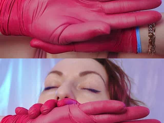 "ASMR: medical nitrile gloves, touching face, relaxing sounds, SFW free video (Arya Grander)"