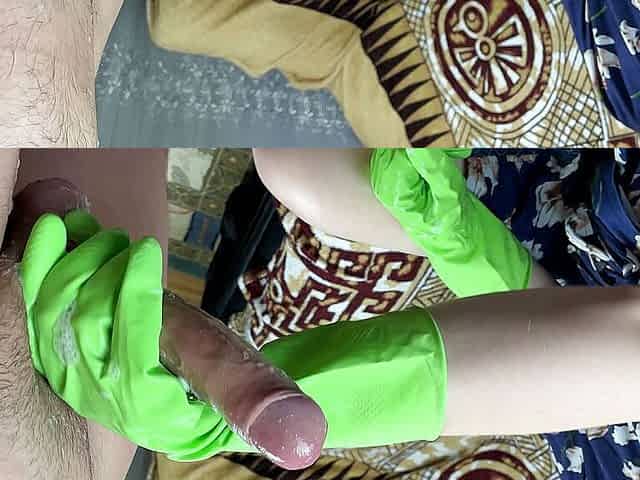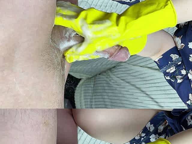 Blowjob In Household Gloves Made Him Cum 4 Times