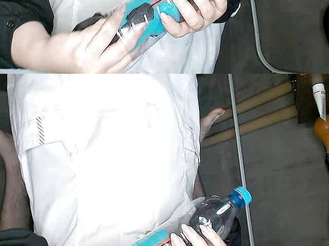 Chubby nurse in latex gloves masturbates and gives urine tease