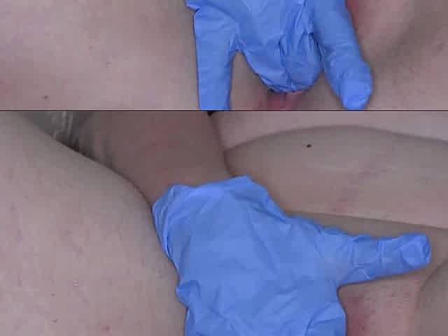 Teen nurse masturbating her pink shaved pussy in rubber gloves solo
