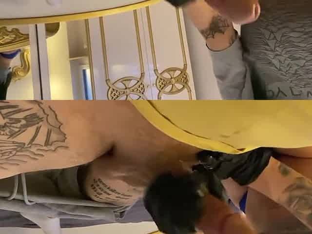 Tattooist asks if this babe can empty my large balls during tattoo session