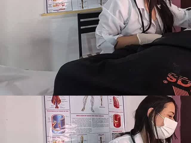Patient Jackie Banes has wand vibrator orgasms during a medical exam
