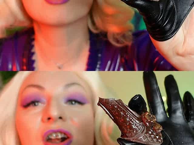 Eating chocolate ASMR video - mukbang close up clip with braces