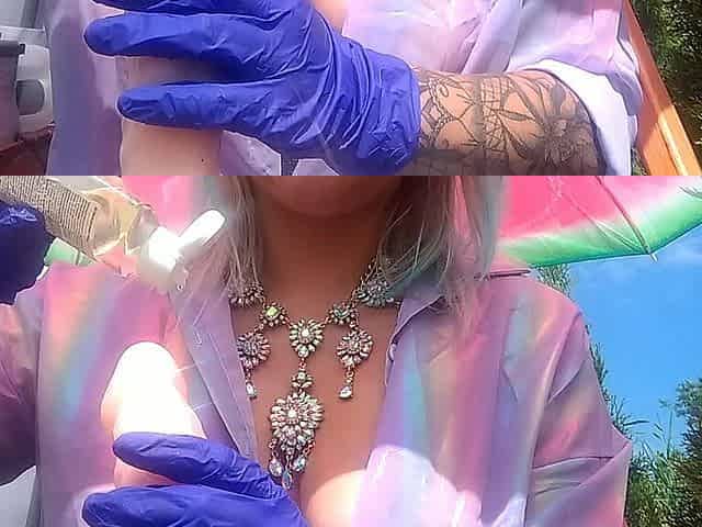Handjob Latex Glove Cock Outdoor And Take Glove For Cuckold Hubby