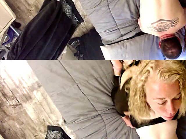 Blonde in fishnets sucks the dick and fucks like a goddess