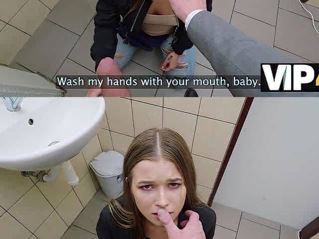 VIP4K. Served by the restroom goddess. Hot sex with Olivia Sparkle & Steve Q