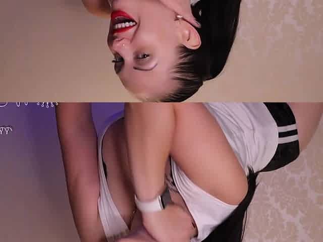 Shaved goddess pleasures herself with toys on webcam
