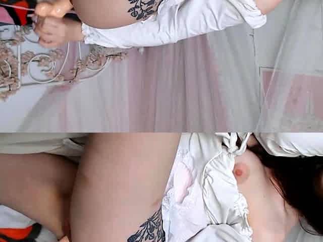 Redhead goddess teases in socks and pleasures herself on webcam