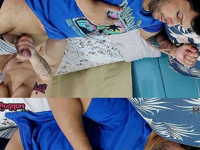 Duex masturbation in jeans latex