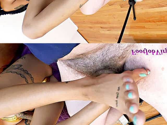 FootJobVirgin - Cumshot from tall tatted multiracial goddess Noonie sexy soles & wiggling toes PT2
