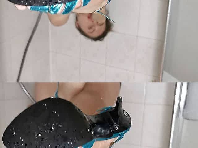 With my high heels in the shower
