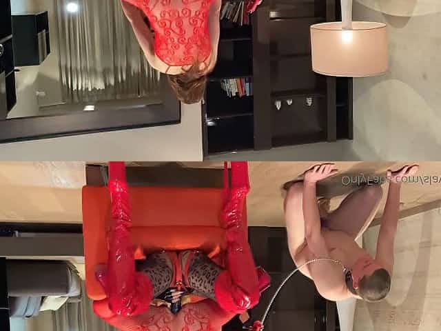 Goddess Sunny Leone amazing red dress masturbation after her husband goes to work
