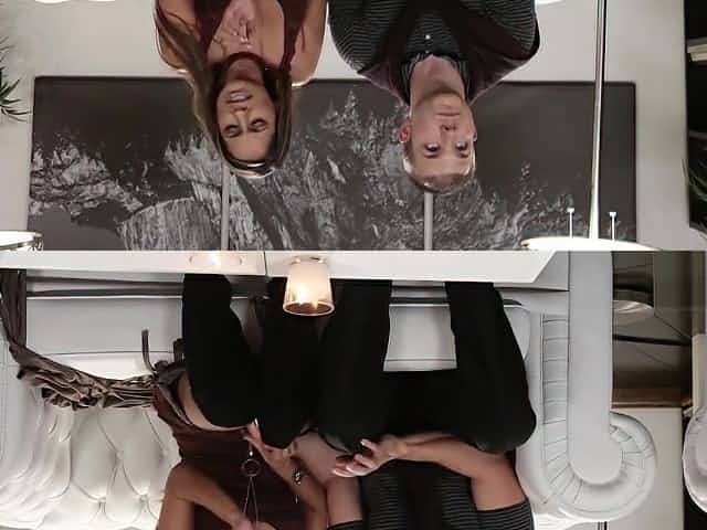 Two lesbian goddess in black lingerie having some fun