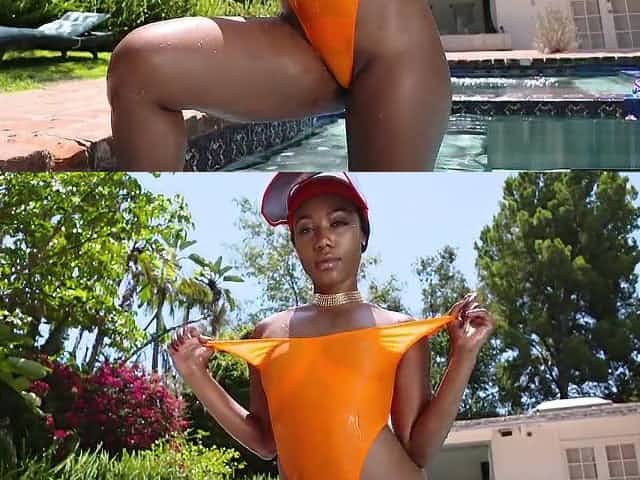 Chocolate goddess Demi Sutra fucked by the poolside