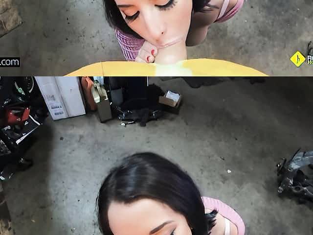 Big-boobed goddess Nina Lopez opens her wet crack for a big cock in the garage