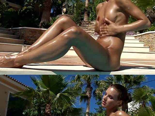 Sizzling hot goddess smears her body with oil and masturbates