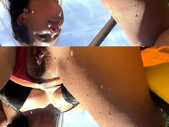 Suck dildo, masturbating outside