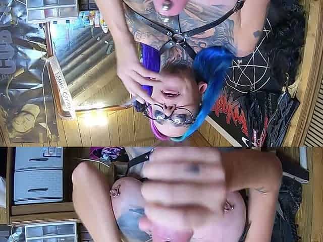 Overweight hottie with blue hair, Cinnamon Anarchy is groaning during the time that riding a goth hard weenie