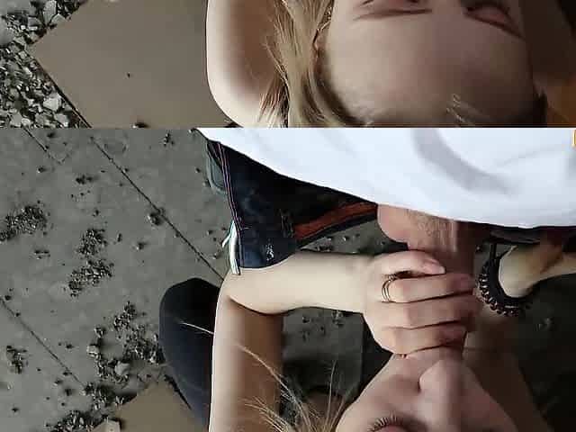 Captivating golden-haired woman is sucking a goth hard rod in front of the camera, in POV
