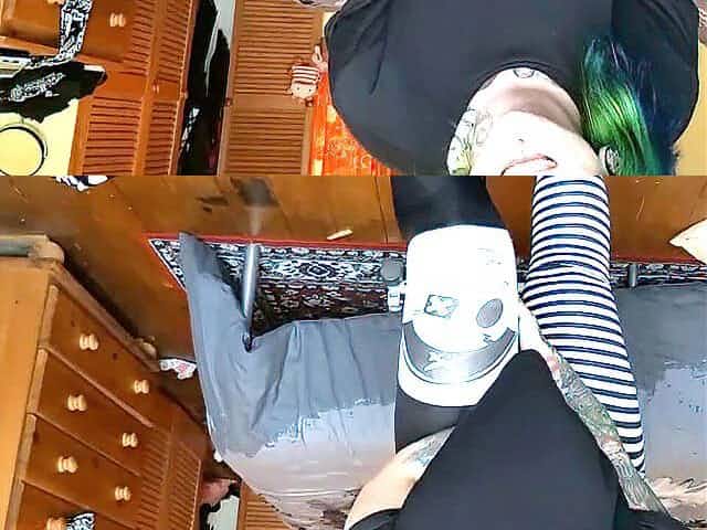 Solo dance, goth teen solo, hairy fishnets solo