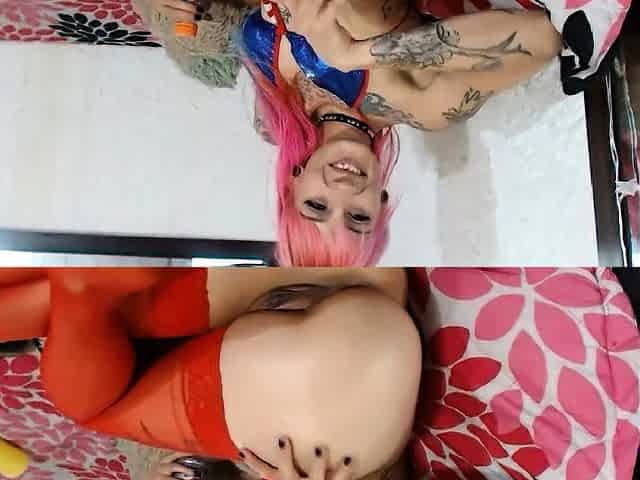 Pussy licking tattooed lesbian goth