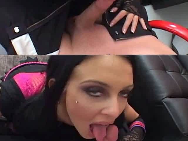 Goth slut sucking on dick