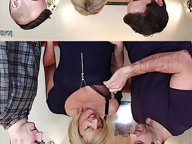 Hot blonde GILF sucking boy’s dick and drinking cum
