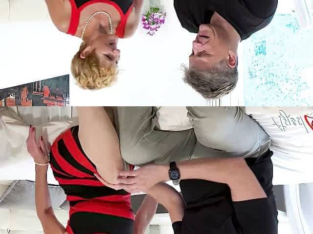 Blonde Granny In Red Dress Seduces Horny Guy For Hot Fuck