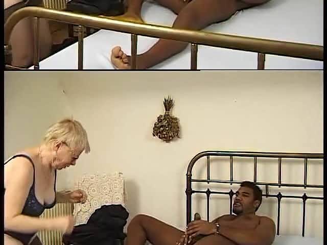 Horny Granny Strokes His Huge Young Cock