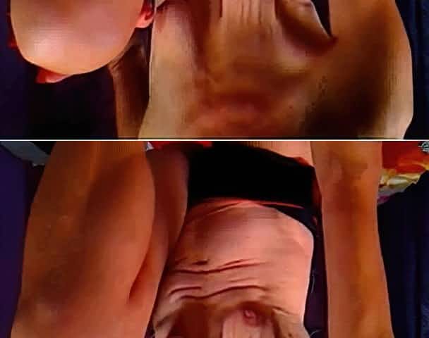 UGLY GRANNY POSES FOR CAM AND POKES ASS