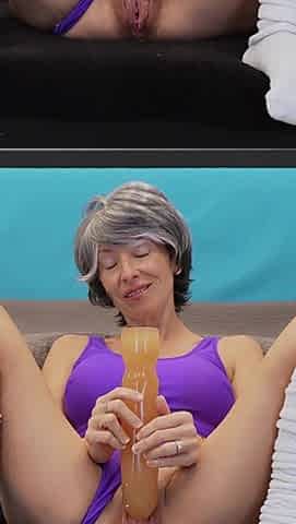 Nasty Granny Masturbates Before Two Men Screw Her On The Sofa With Nancy Vee