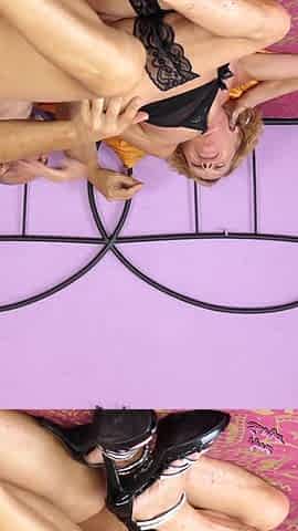 2 older strumpets get their unshaved cunts jizzed on by BBC