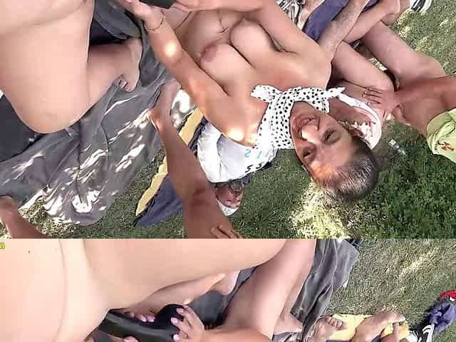 Wild outdoor orgy with a horny mature group getting it all in