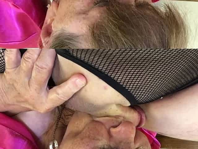 Close-up of a hot granny getting her fat pussy devoured by a man's tongue