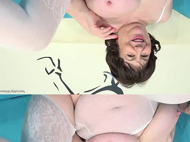 Grey-haired gilf Zosya from Russia finger fucks her pussy