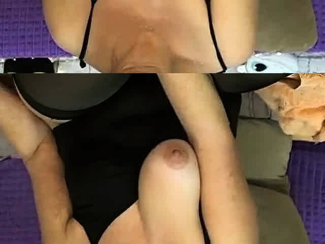 Our oldest GILF returns, so she shows her tits and touches her old pussy.