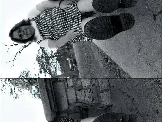 Nurse vicki models in her ebony and whot hogwarts outfit and spiked boots