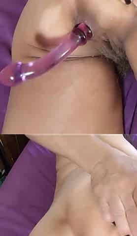 Grandma milf fucking her two holes, I put my cock in her ass and a huge dildo in her pussy