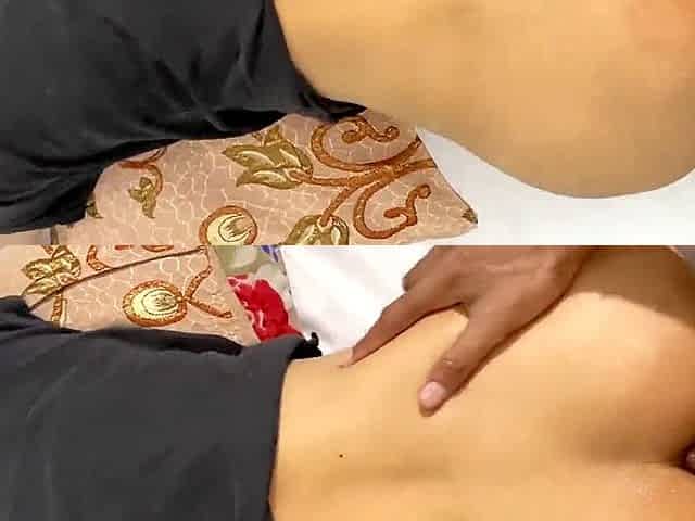 Seema's first anal experience ends with a creamy finish on her tits