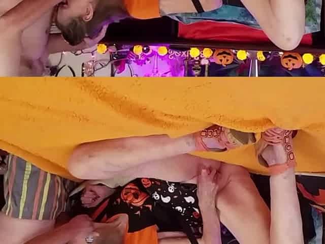 Granny sucks cock, another babe gets her ass drilled, and then she rides