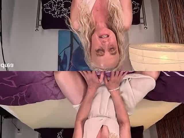 Spoiled aged saggy breasts mith mega toy and large titfuck and fisting in POV