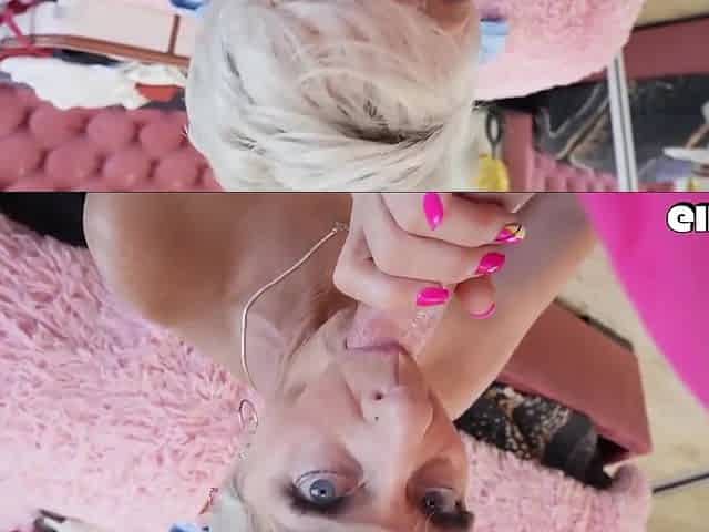 Blonde with Big Boobs Gives Blowjob to Her Dildo on Liv more