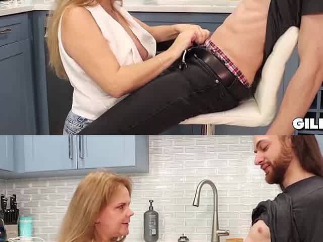 Granny Desiree Eden gives a blowjob and fucks in the kitchen.