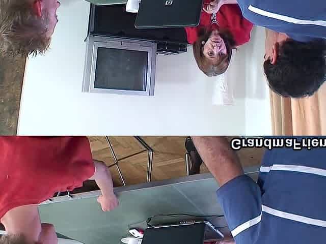 2 boys share 60 years old office lady