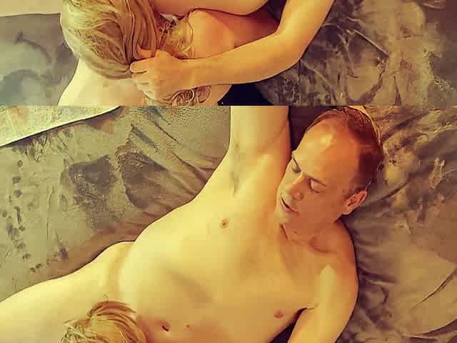 Step granny giving step grandson massage and banging him after