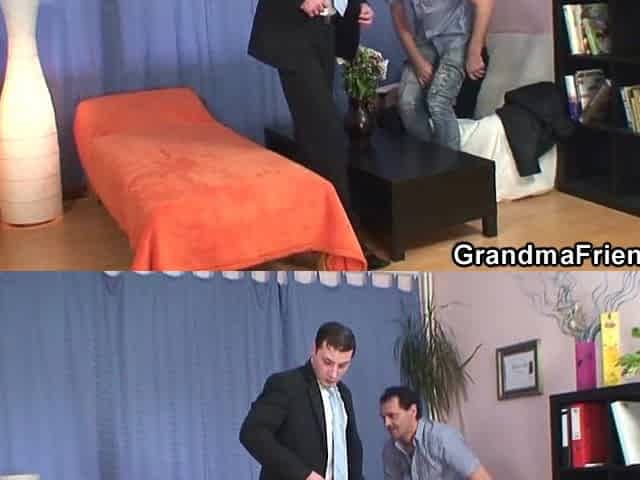 Breasty Golden-Haired Granny Gets 3Some With 2 Hunks