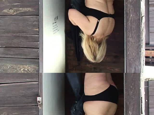 This Chab bangs breasty golden-haired granny in public dressing cubicle